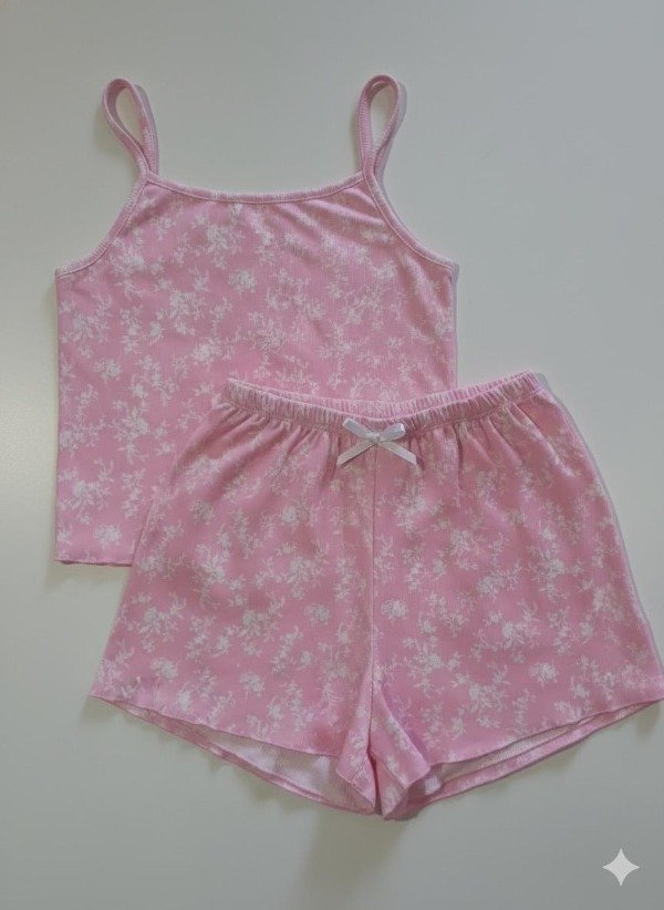 Pijama Morley Corto Pink Flower por Curva (6 unidades )