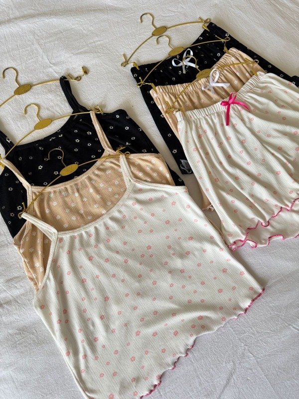 Pijama Tela Premium Calada Blanco Con florecitas Rosas