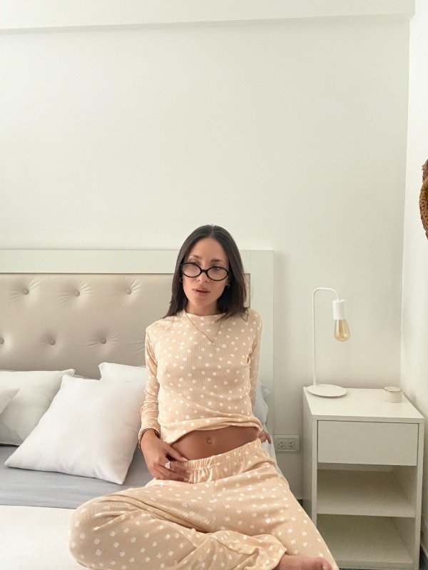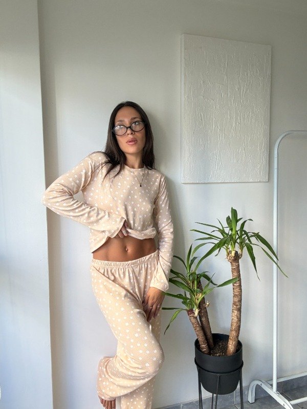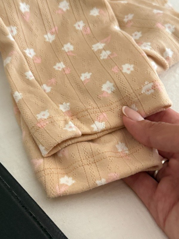 Conjunto de Pijama Rattier Algodon Extra Calidad Beige con Margaritas