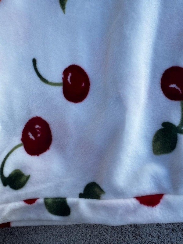 tiene unas pequeñas manchas por el rojo de la cereza